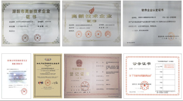 公司已荣获高新技术企业和深圳市高新技术企业称号,并发起成立深圳市微波通讯技术应用行业协会。与中国地质大学联合申请自然科学基金,项目内容:MIMO天线系统动态资源分配。 天鼎微波目前拥有20多项申请专利,10多项授权专利,成功构建了严密的知识产权保护体系。如:GPS北斗双模定位模块实用新型专利书、减少馈电网络新型实用型专利证书、完整金属边框实用开阳星专利证书、微波感应开关证书、软件著作权证书等。